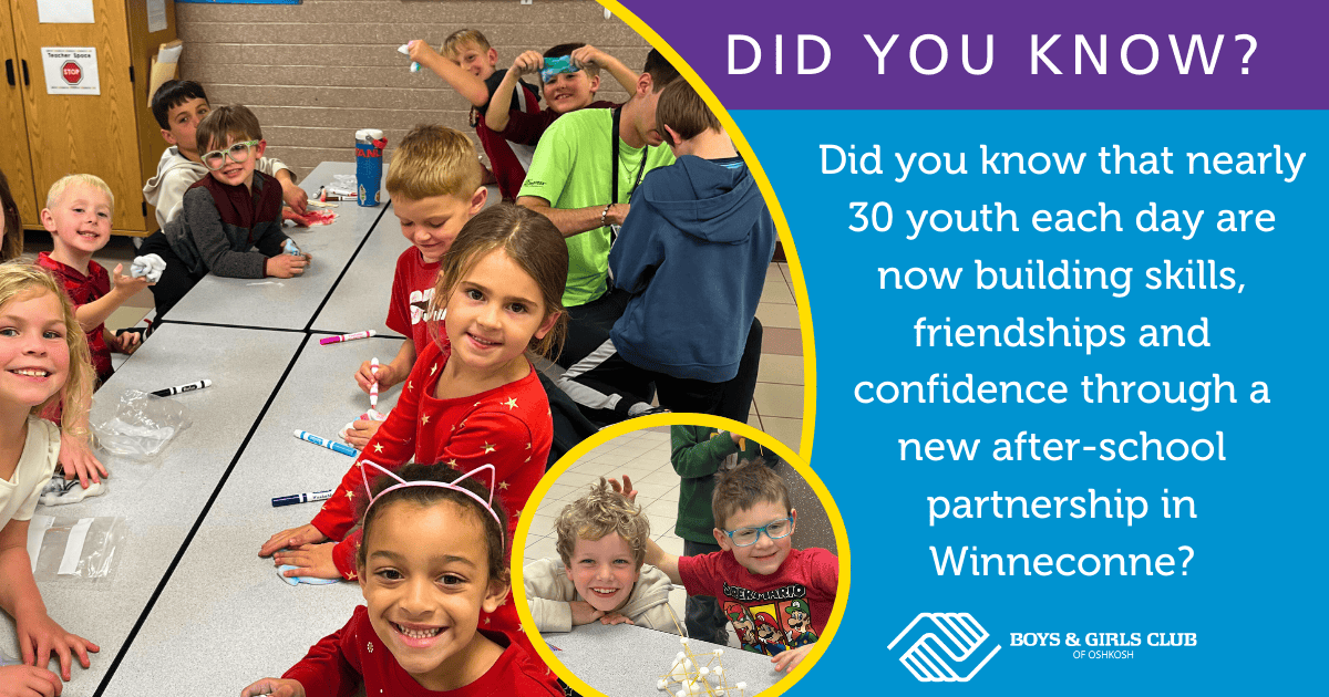 February 25, 2026 A New Partnership Creating Great Futures At the start of the school year, Boys & Girls Club of Oshkosh proudly opened its doors at Winneconne Elementary School, bringing high-quality after-school programming to